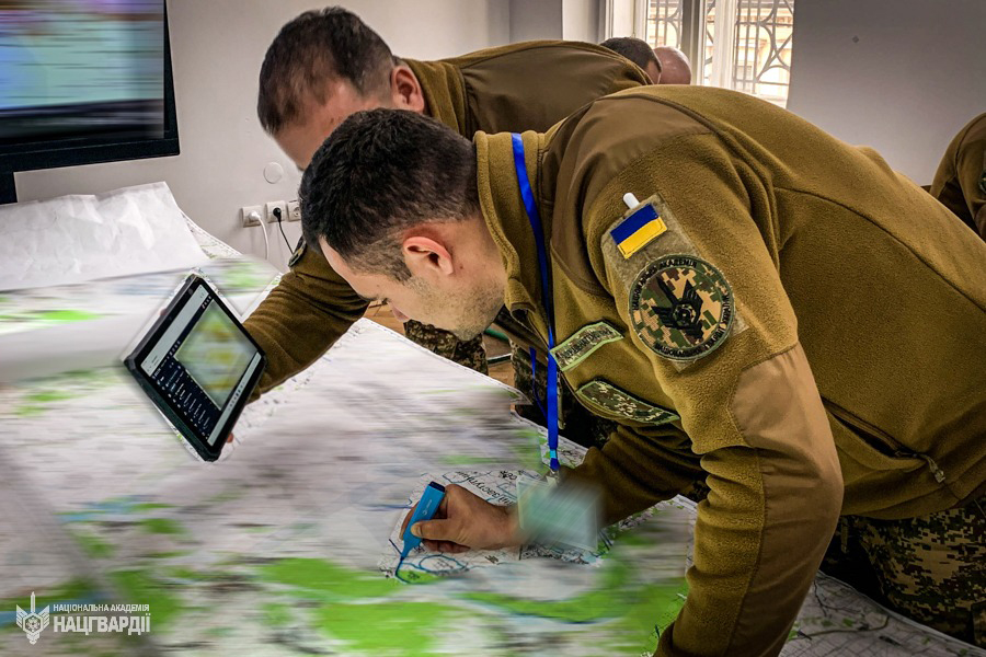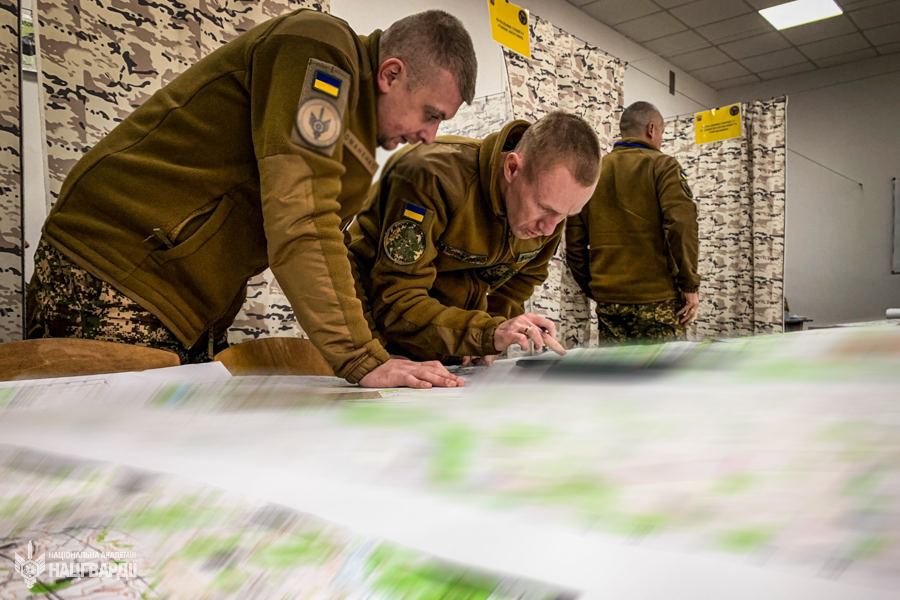 Зі слухачами Навчально-наукового інституту підготовки керівних кадрів Національної академії Національної гвардії України пройшло двоступеневе командно-штабне навчання на картах. Темою тренування стало виконання оперативно-тактичним з’єднанням Національної гвардії завдань щодо забезпечення правового режиму воєнного стану, участі у припиненні збройного конфлікту на державному кордоні, відсічі збройної агресії та ведення стабілізаційних дій у зоні відповідальності.
