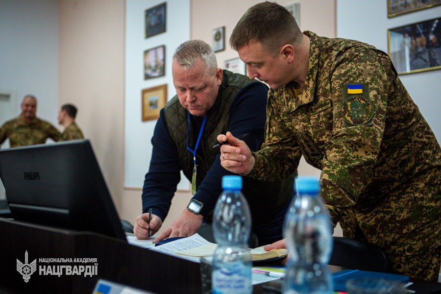 Начальник академії НГУ полковник Андрій Манько презентував структуру закладу, та зосередив увагу партнерів на ключових змінах, які були впроваджені останнім часом з метою оптимізації освітнього процесу, підвищення його ефективності та адаптації до сучасних безпекових викликів та впровадження бойового досвіду в освітній процес.
