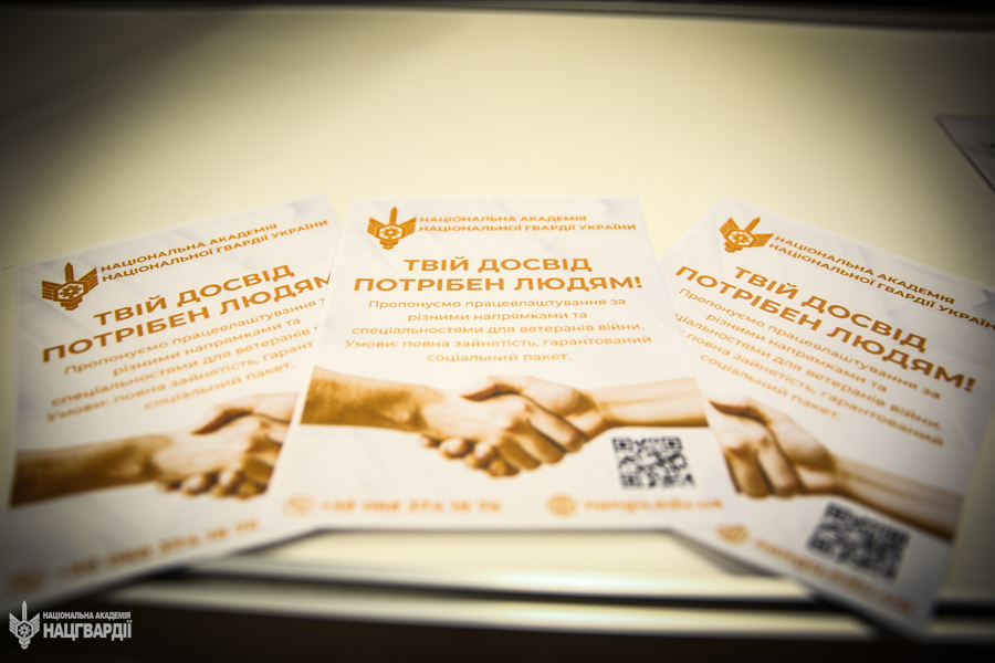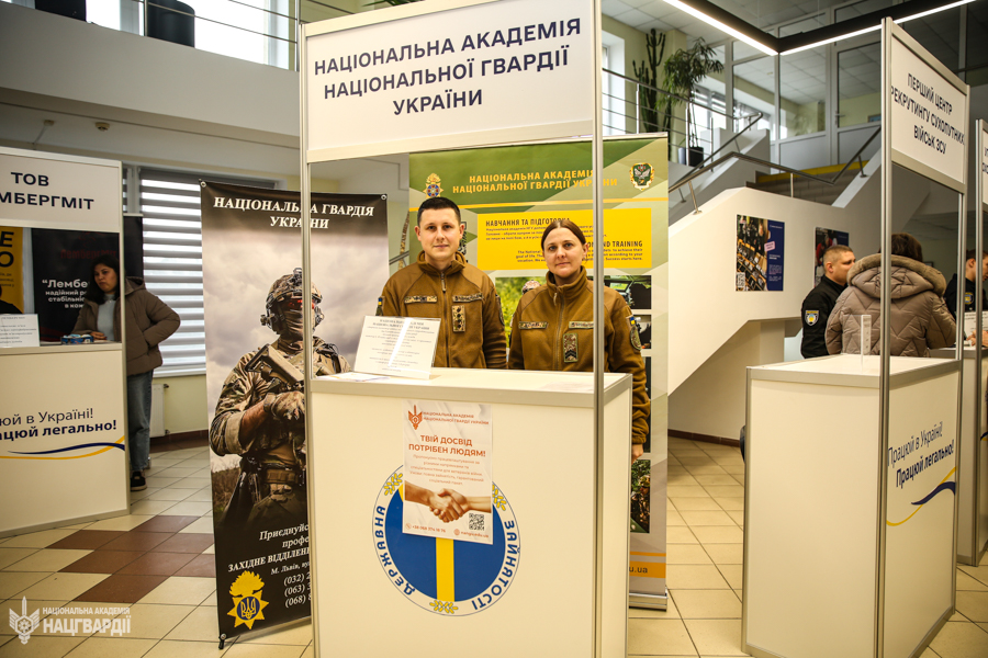 Представники Національної академії НГУ презентували актуальні можливості для працевлаштування та навчання, розповіли про наявні вакансії, програми підготовки офіцерів, умови вступу та перспективи професійного розвитку в лавах Національної гвардії України. Усі охочі мали можливість поспілкуватися з представниками Академії та отримати відповіді на свої запитання.
