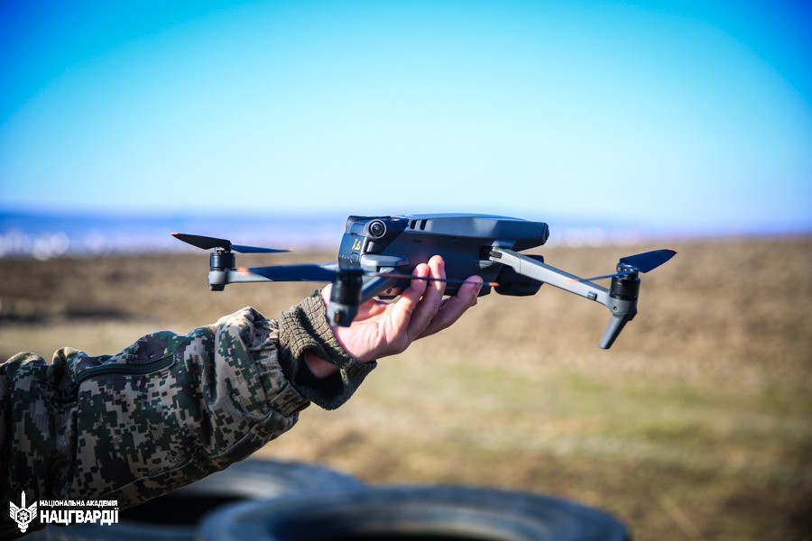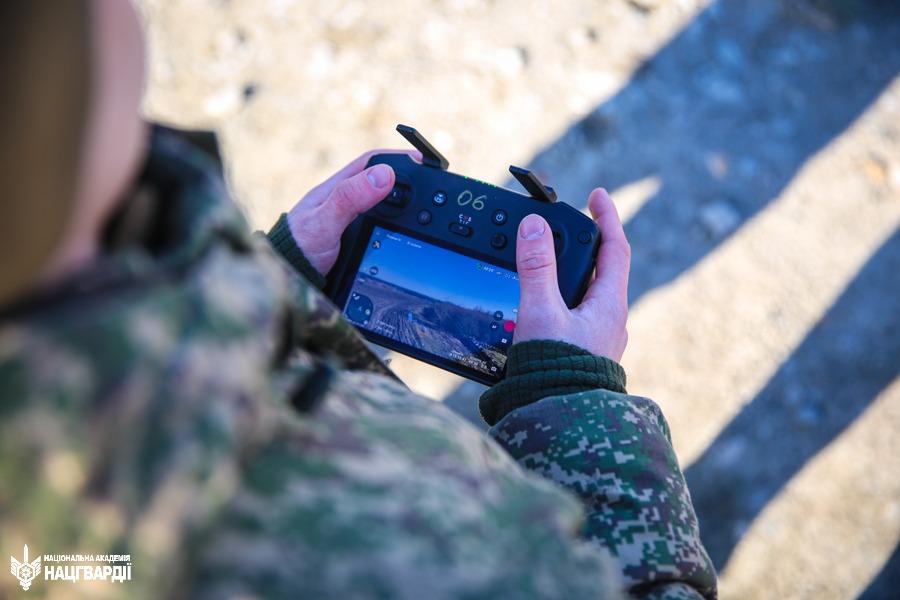 Особлива увага приділяється підготовці гвардійців у сфері застосування безпілотних літальних апаратів, що сьогодні є невід’ємною складовою ефективних дій підрозділів. Майбутні офіцери відпрацьовують польоти на БПЛА, зокрема виконують фігури на квадрокоптерах DJI Mavic. Під час занять курсанти навчаються впевнено керувати дроном, утримувати стабільність у повітрі, виконувати маневри та орієнтуватися в просторі. Такі вправи дозволяють закласти фундаментальні навички, необхідні для подальшої роботи з безпілотниками.
