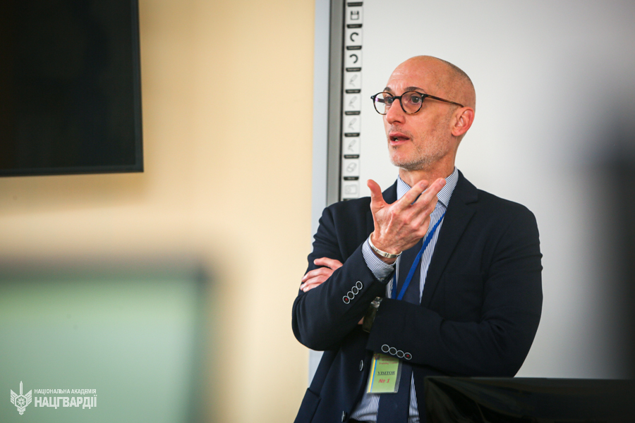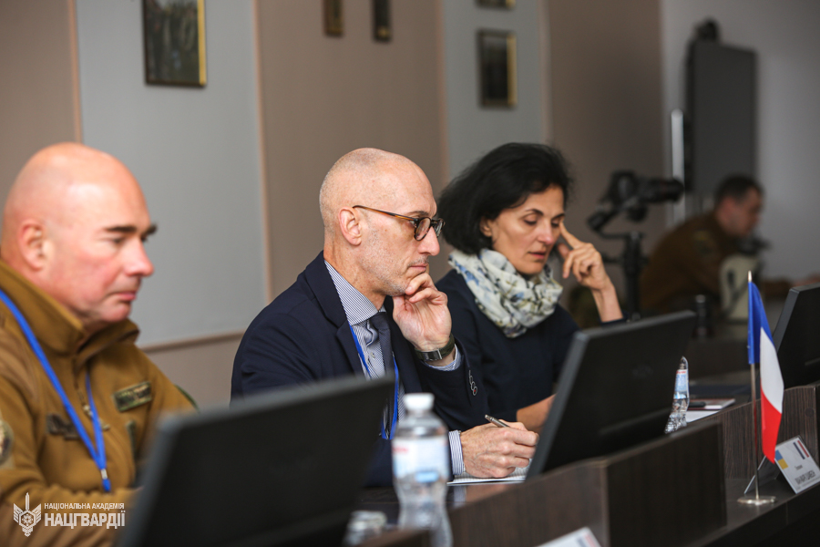 До Національної академії Національної гвардії України завітали Аташе з правоохоронних питань Посольства Французької Республіки в Україні полковник Жан-Марк Шамбон, Радник стратегічного рівня від Національної жандармерії Французької Республіки у НГУ полковник Жан-Франсуа Ляффорг та помічниця Аташе з правоохоронних питань Посольства Французької Республіки в Україні Марина Катренюк.