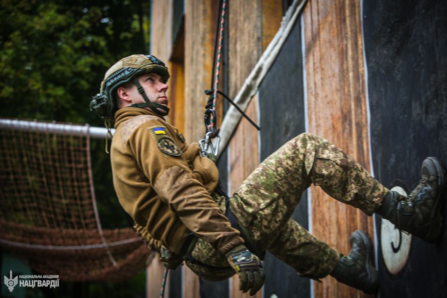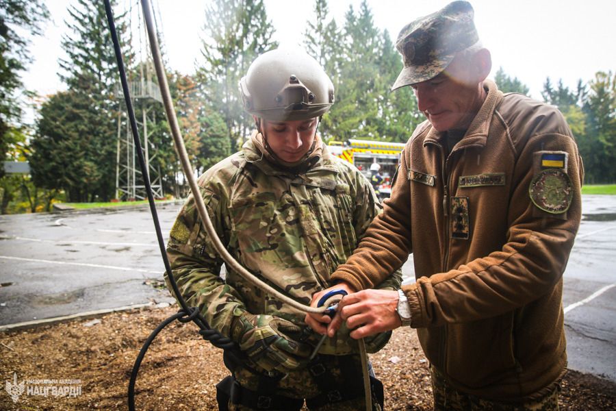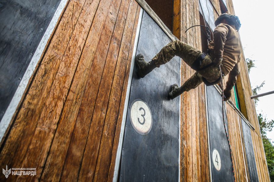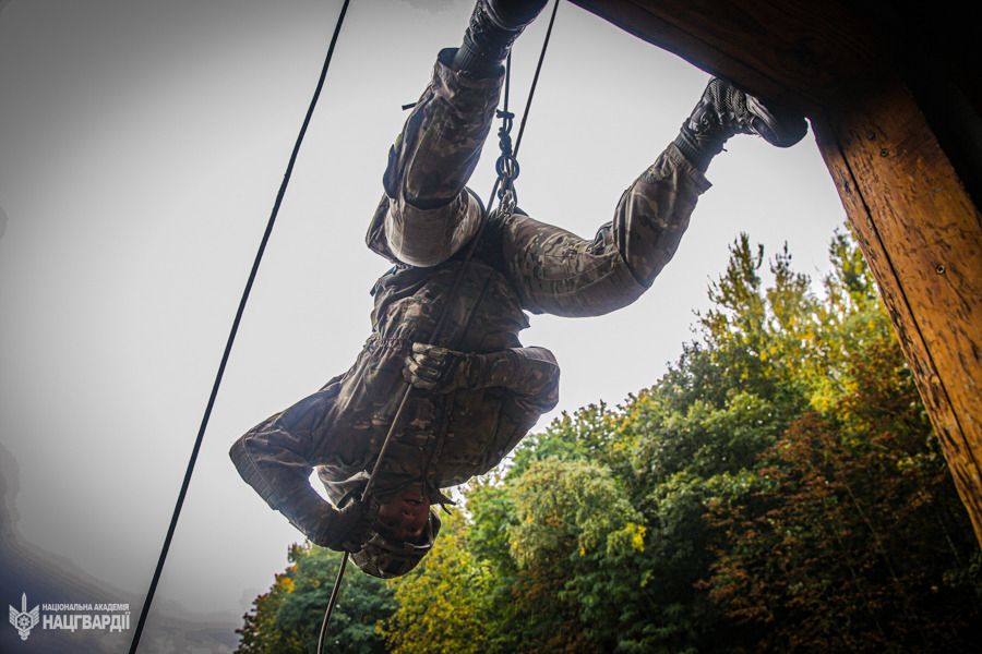 Курсанти навчально-наукового інституту забезпечення державної безпеки Національної академії НГУ постійно відпрацьовують спеціальні навички. Черговий етап підготовки присвячений тренуванню групи спеціального призначення із застосуванням висотного спорядження для виконання завдань у складних умовах урбанізованої місцевості – зокрема під час висотного штурму будівель.