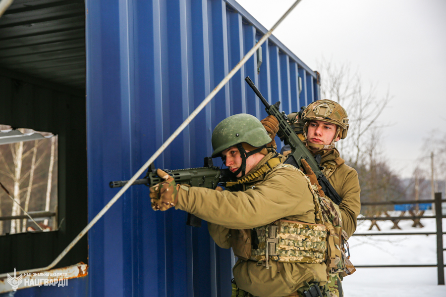 У Національній академії Національної гвардії України з курсантами тривають інтенсивні заняття з тактики ближнього бою та штурмових дій. Майбутні офіцери відпрацьовують основи організації та ведення бою в урбанізованій місцевості, удосконалюючи навички, необхідні для виконання завдань у сучасних умовах ведення бойових дій.