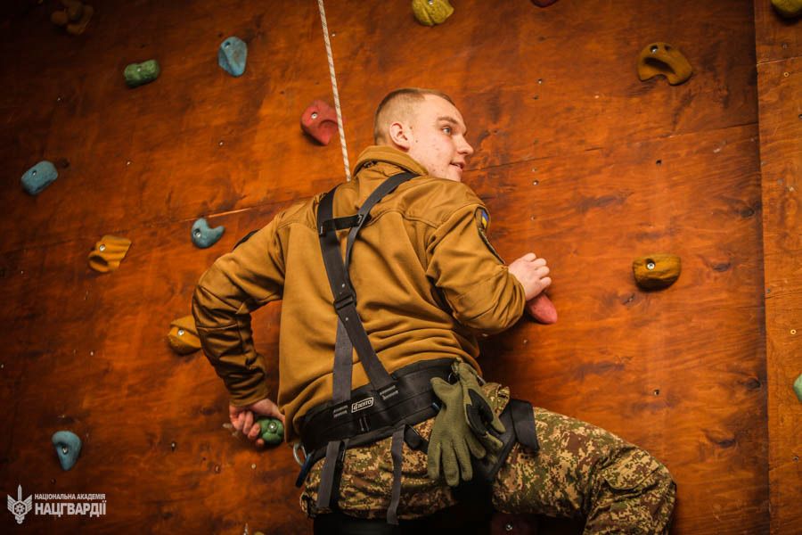 Під час занять вони відпрацьовують алгоритми дій у складних та потенційно небезпечних умовах. На скеледромі гвардійці долають ділянки різного рівня складності, вдосконалюють техніку підйому та спуску, а також відпрацьовують взаємодію в парі. Майбутні офіцери виконують вправи з використанням спеціального альпіністського спорядження.